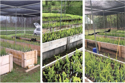 The common gardens were raised for 2 years, recording their phenotypic and phenological traits and harvested for biomass and isotope analysis. The results of the common garden experiment to investigate the phenotypic plasticity and genotypic variations in red spruce was published in 2022. The results of this paper laid the foundations for extending our understanding of the species and further apply it in the field.